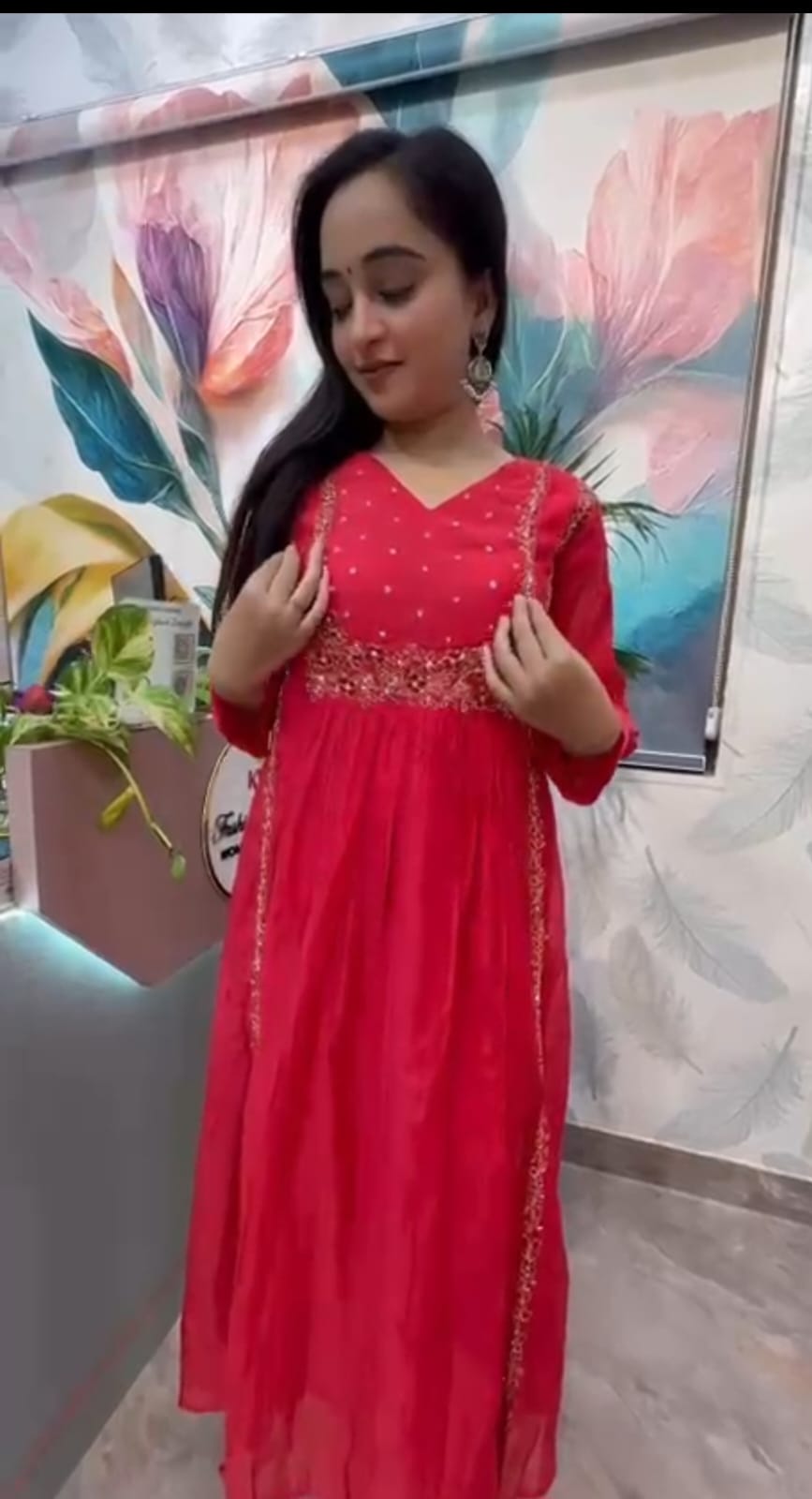 Elegant Red Anarkali Dress ❤️