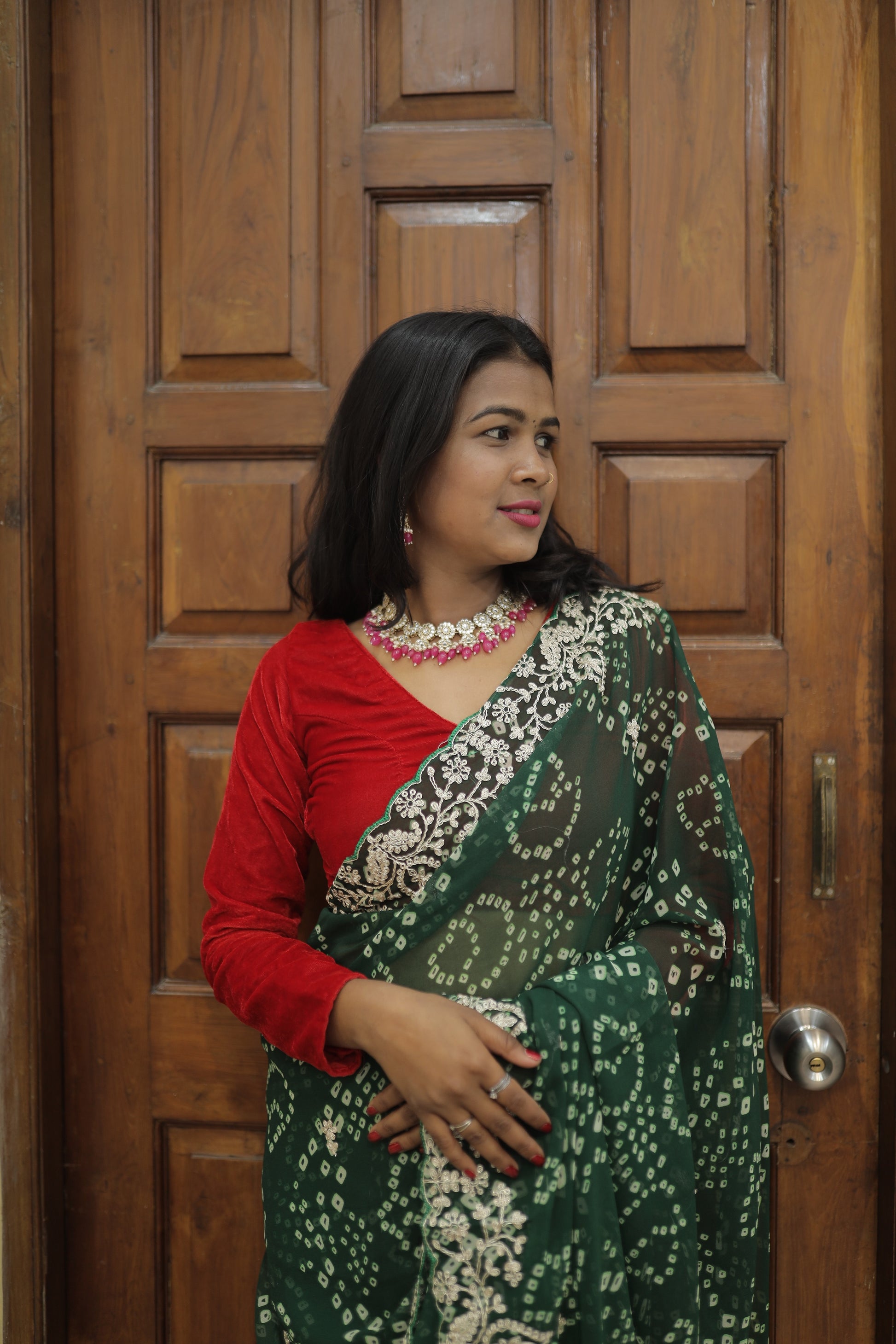 Green Bandhani Saree with Elegant Embroidered Border 💚✨